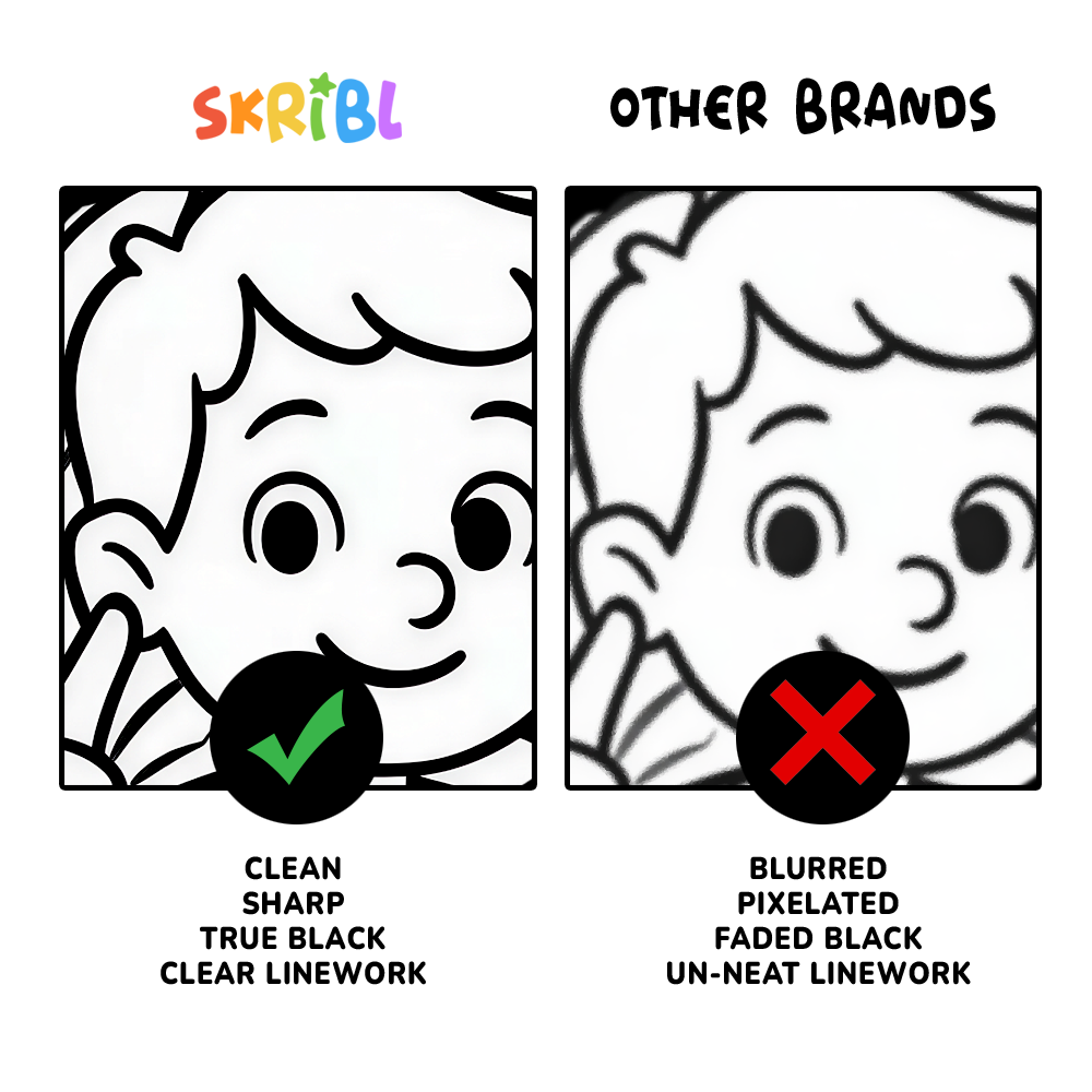 That’s why every SKRIBL book is crafted with clean, precise line art and smooth, smudge-free printing.